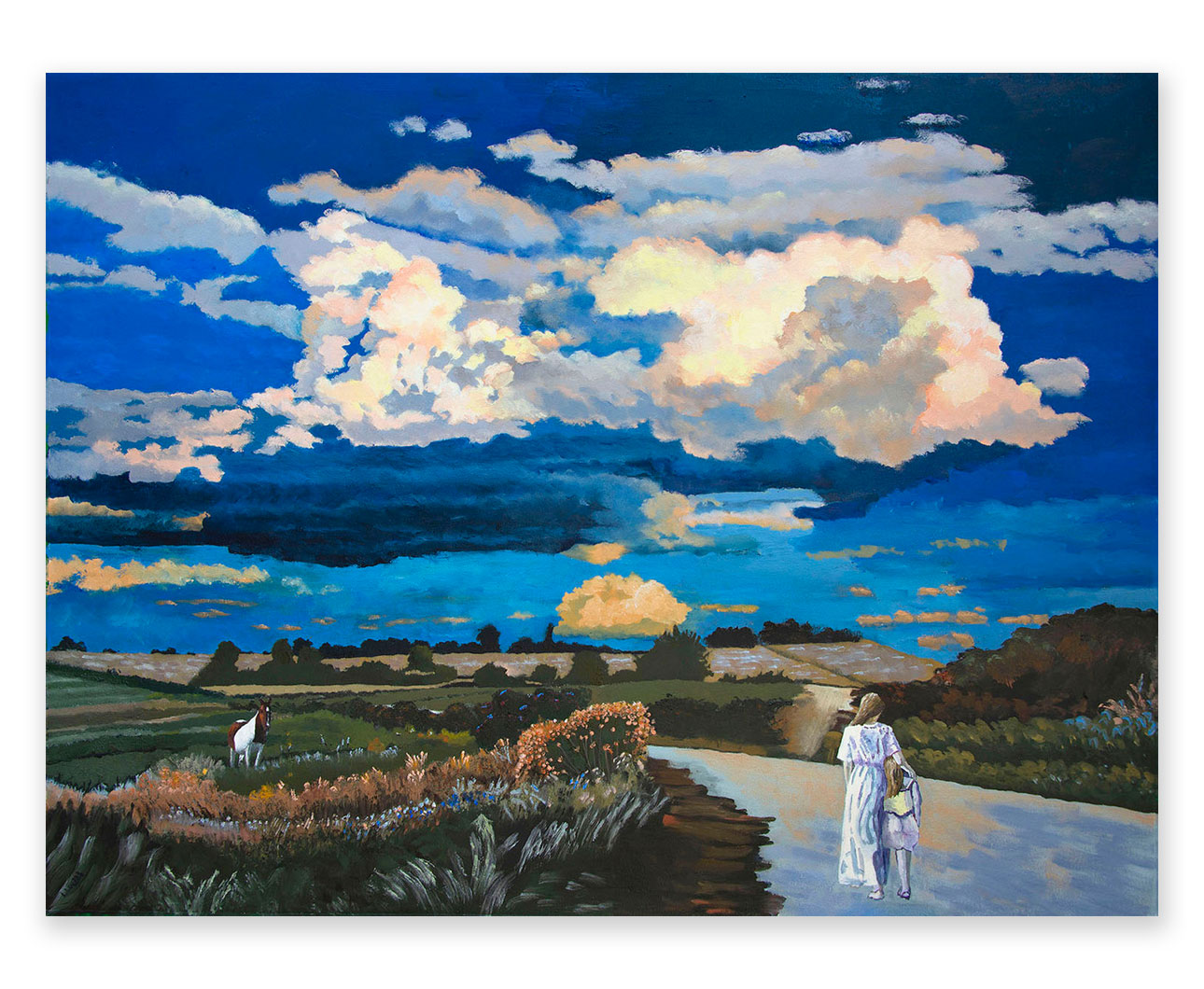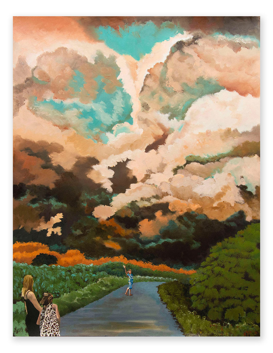My current body of work combines painting and short film. It’s called: Regarding Nature. The work deals with two main themes: one is to portray a world in harmony with nature and the other is to show the powerful forces of nature. There is a contrast between a peaceful, bucolic kingdom where animals and humans live as one and a world where the sheer power of nature shows us how small and humble we really are. I’ve always been interested in creating dramatic narratives, posing questions, provoking the viewer, depicting scenes both of serenity and suspense. This is certainly because my first love was drama, theater and film. I moved away from the performing arts to become a visual artist, but I never said goodbye to my dramatic gifts. In fact, I still produce short films, both fictional and documentary.
